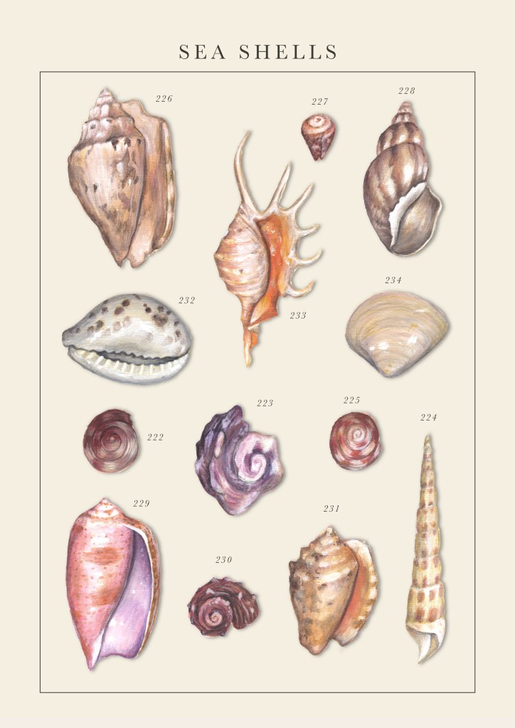 Sea Shells Tagged natural history, sea shells, sea shells painting, shells, shells drawing, shells painting, shells science illustration, shells scientific illustration